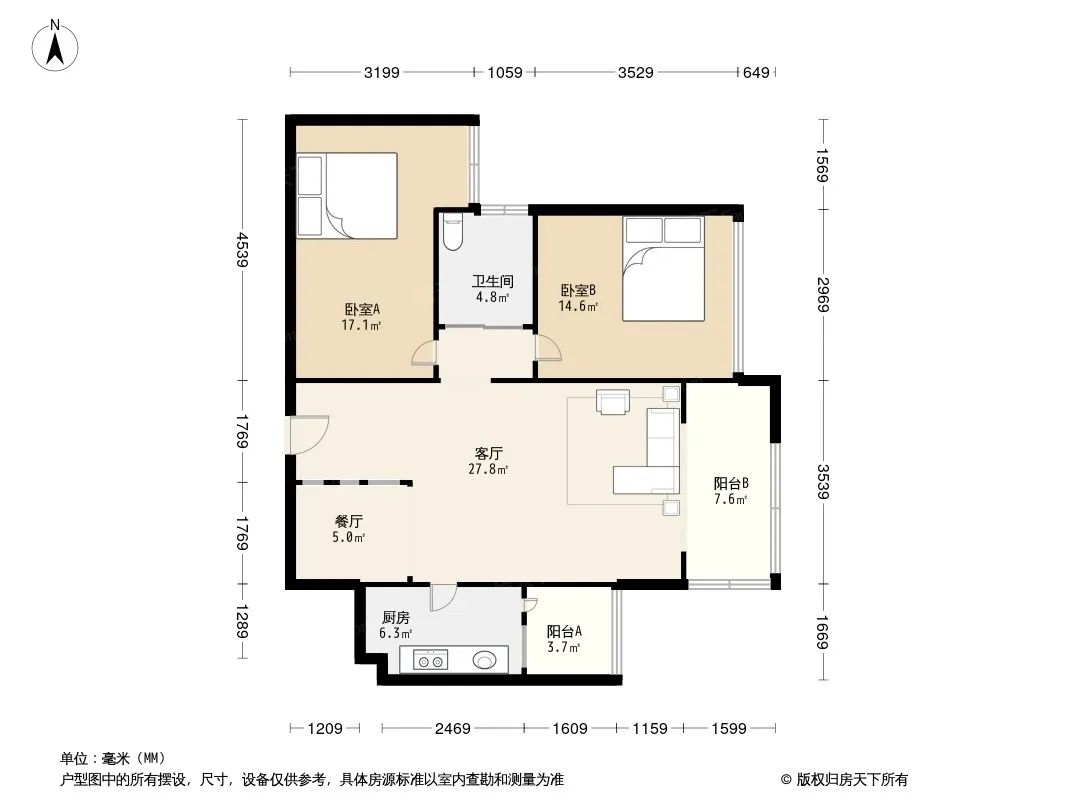 户型齐全,主打南北通透,全明格局三居