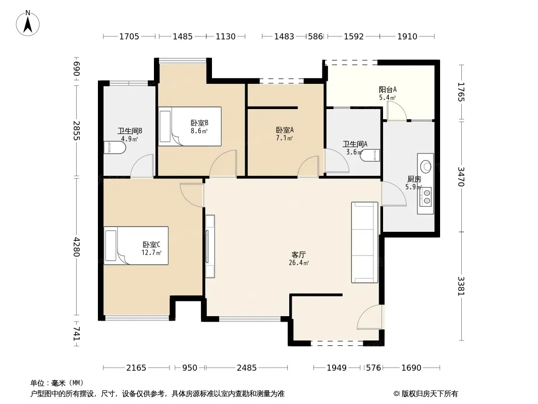 *获取完整户型报告,同时会有免费语音讲解服务