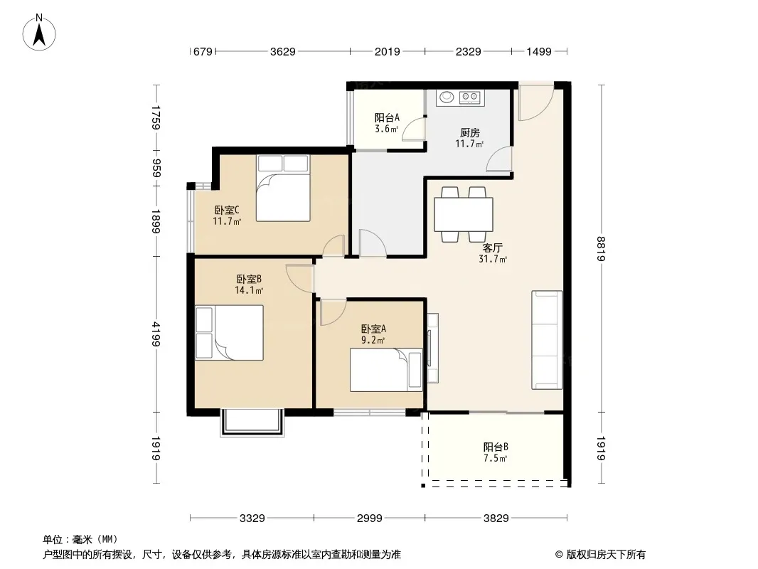 户型齐全,主打户型方正,双阳台,主卧朝南三居
