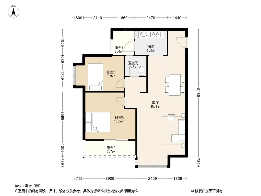 户型齐全,主打明卫,客厅朝南,双阳台三居