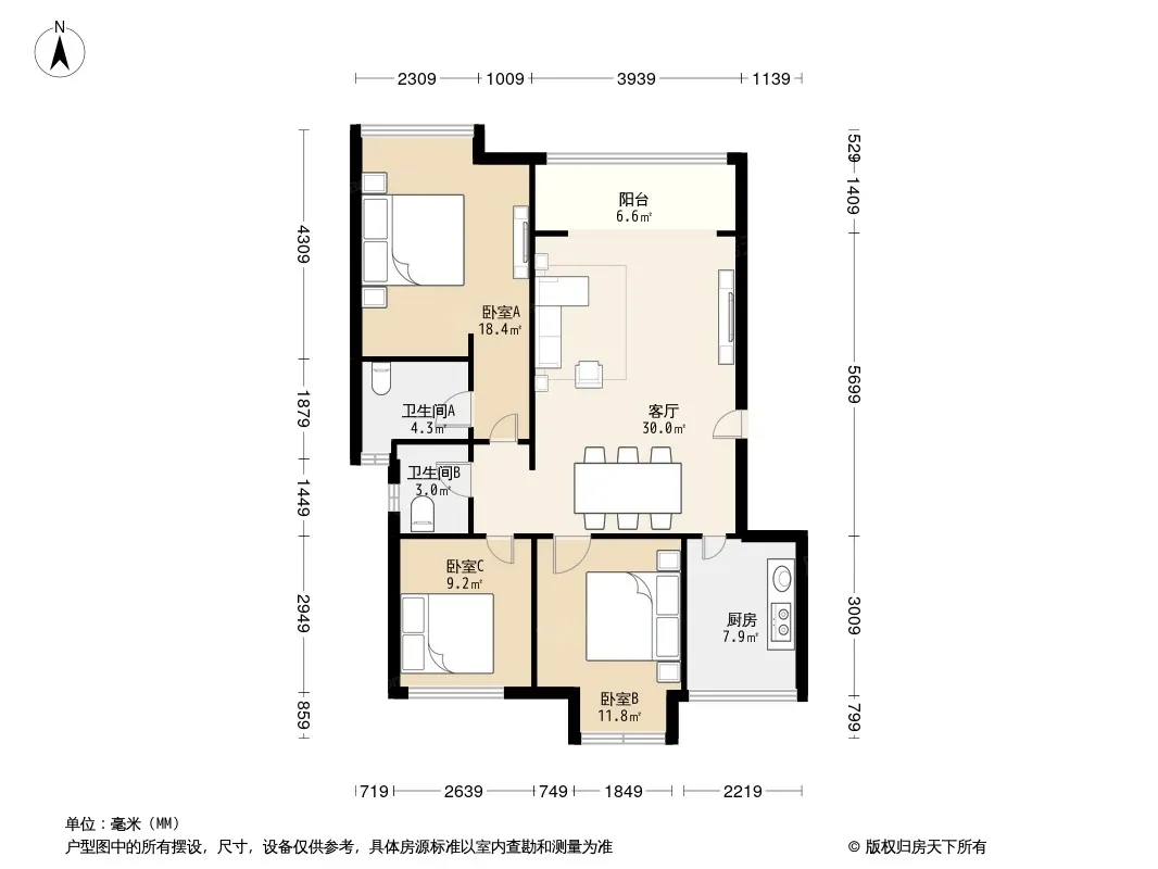 户型齐全,主打明卫三居