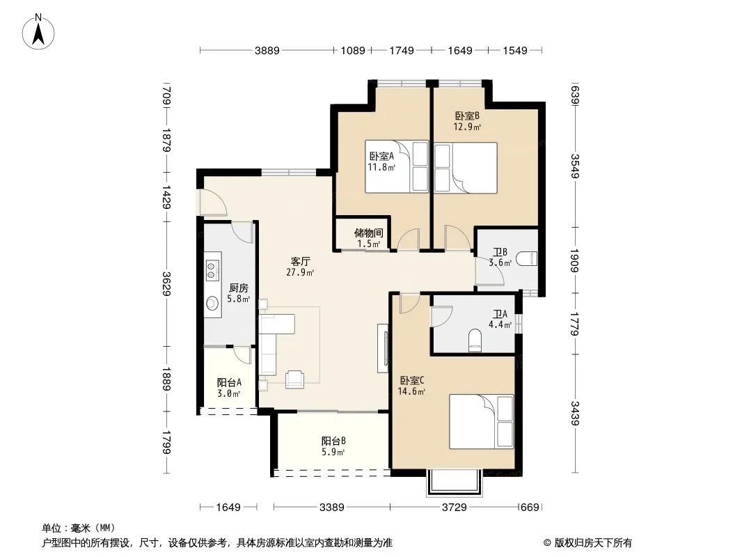 户型齐全,主打户型方正,明卫,双阳台,主卧朝南三居
