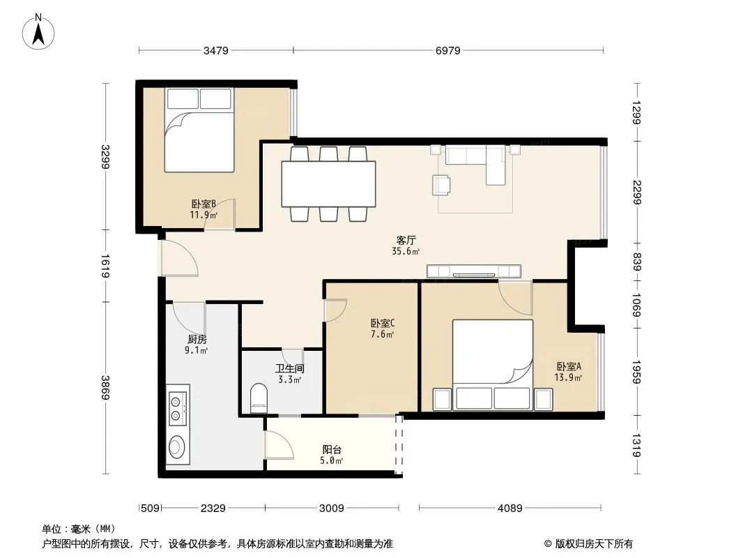 合能珍宝琥珀 3室1厅 南