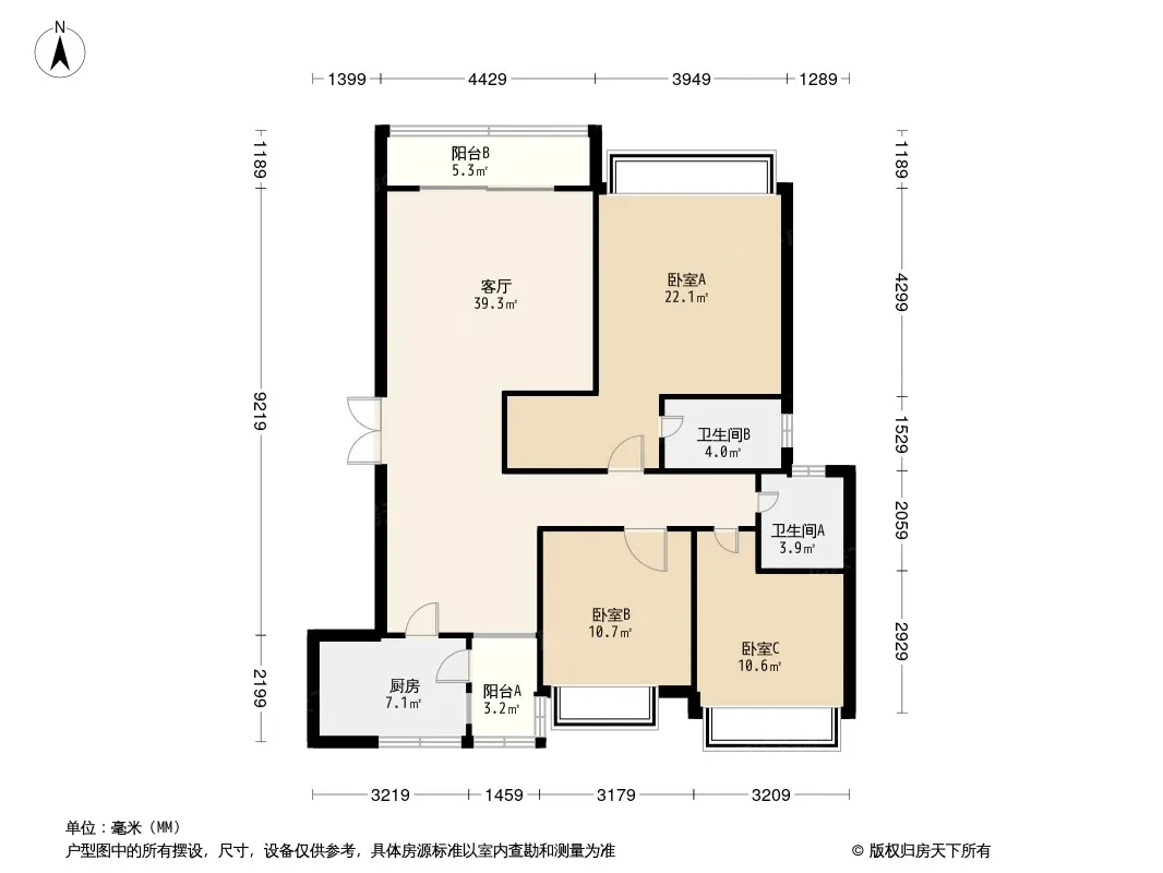 美的新城公园天下 3室2厅 南 北