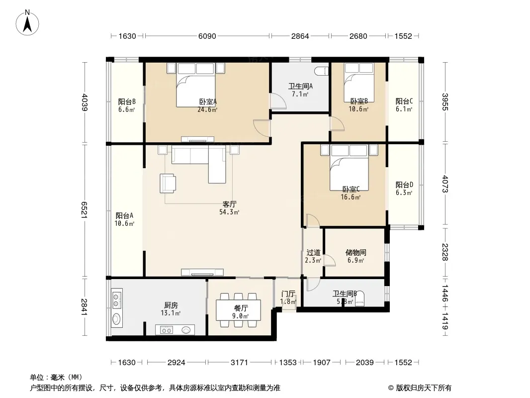 户型齐全,主打明厨,明卫三居