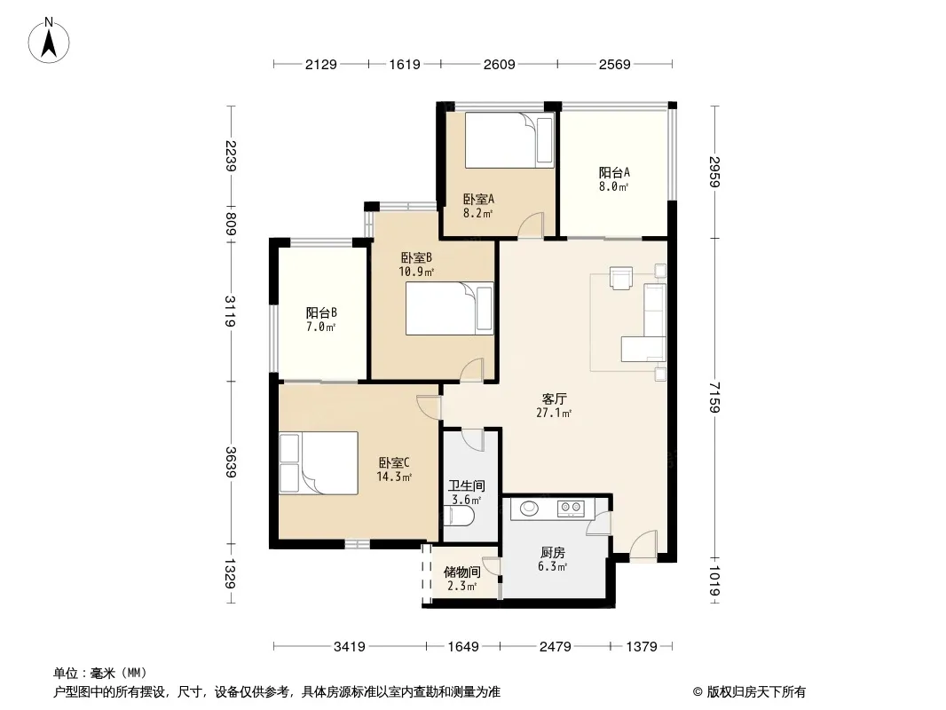 嘉美地 3室1厅 东 北