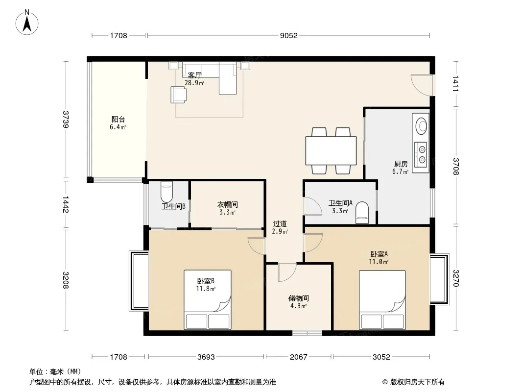 户型齐全,主打户型方正,明卫三居