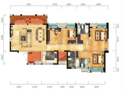 户型齐全,主打户型方正,主卧带卫,观景飘窗,双阳台三居