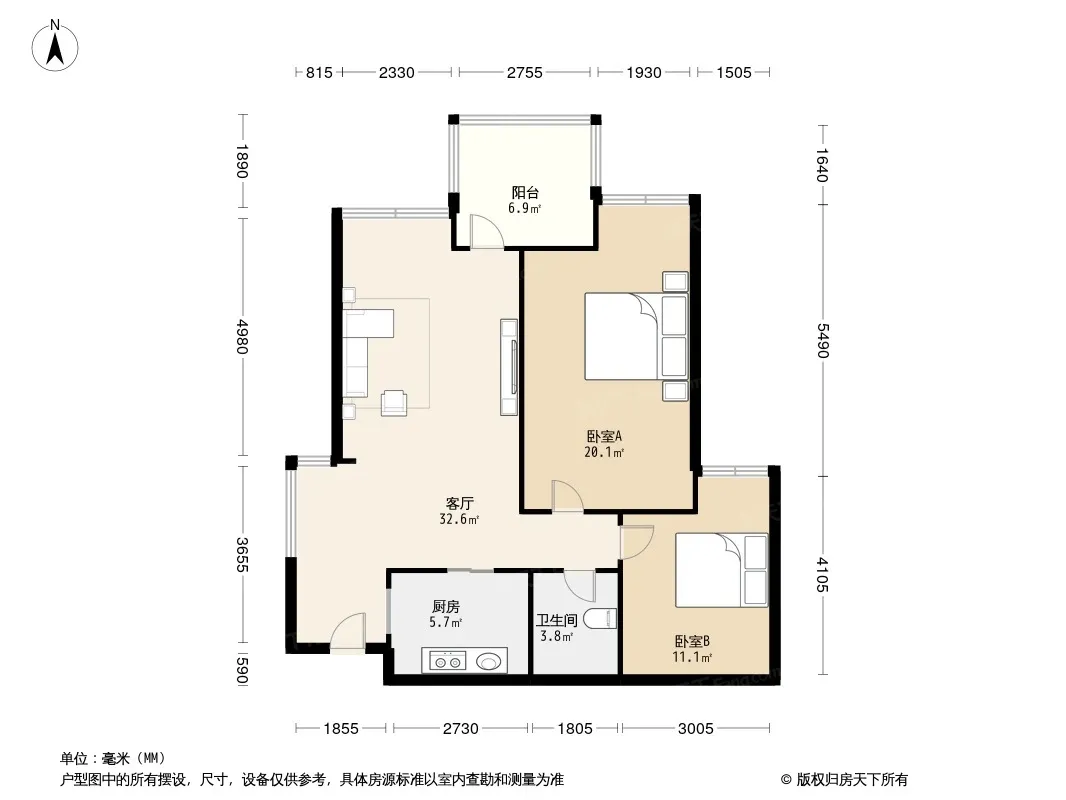 户型齐全,主打明厨,客厅朝南二居