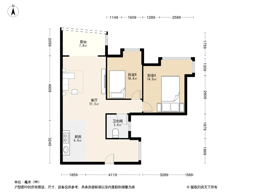 户型齐全,主打户型方正,双阳台二居