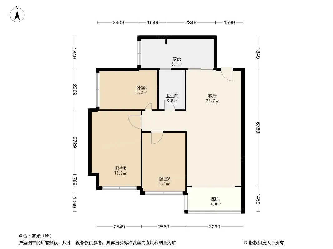 户型齐全,主打客厅朝南三居