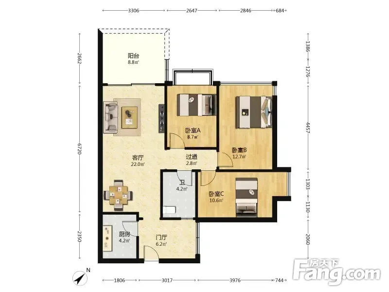 富丽碧蔓汀3室1厅西北