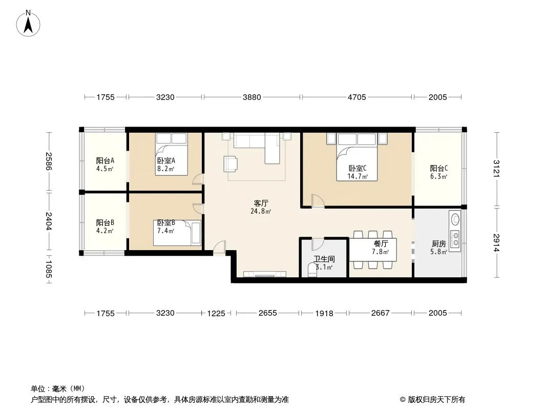 户型齐全,主打明卫,明厨三居