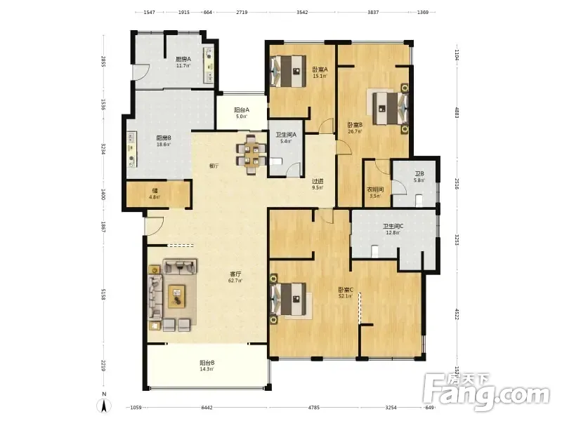 房屋拥有相对宽松的尺寸,布局通透,动静分离,设计豪华