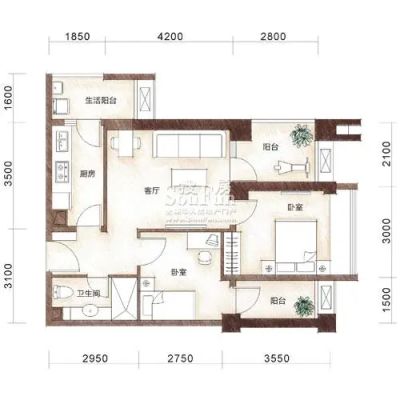 乐摩筑2室1厅东东南