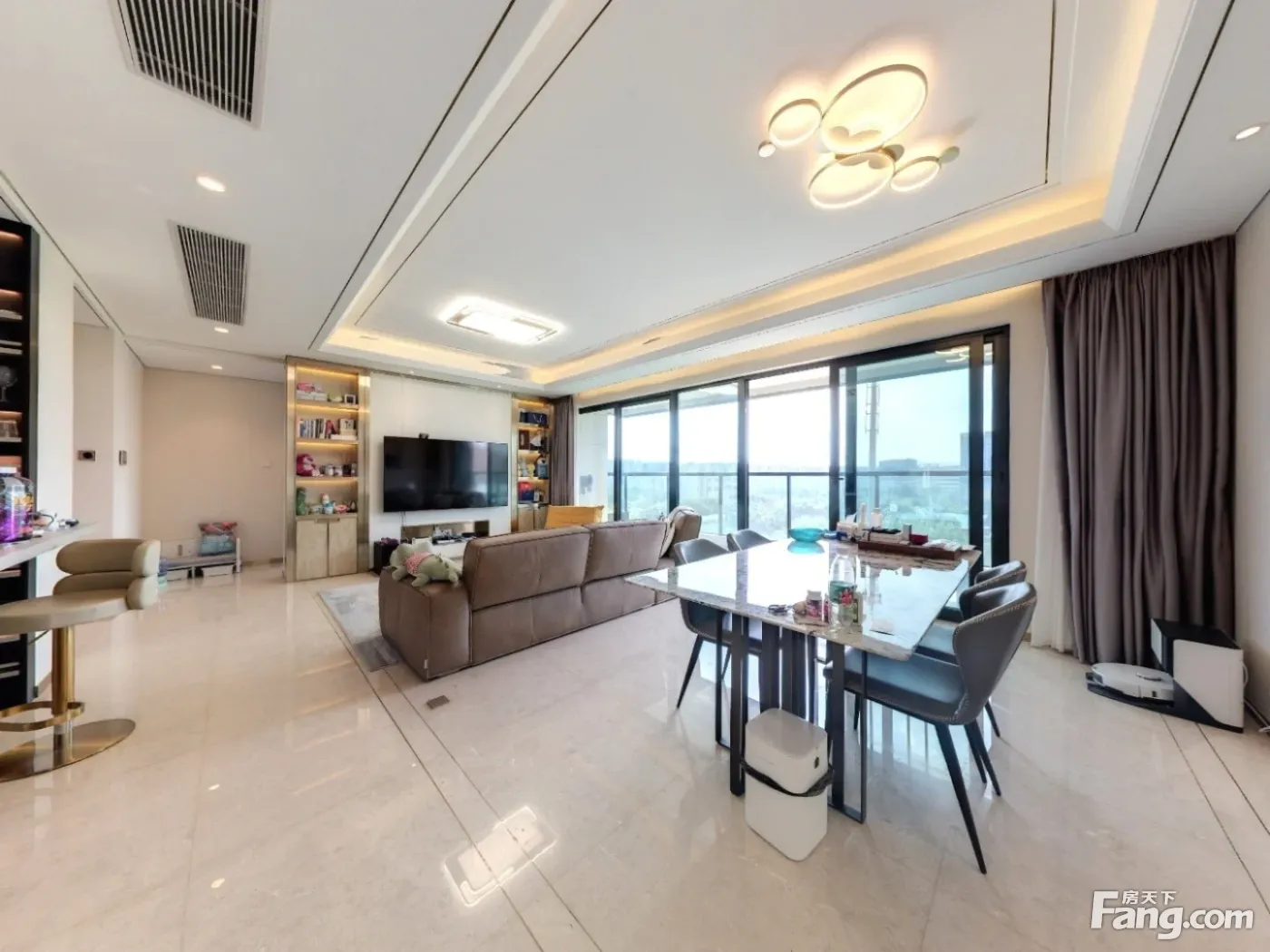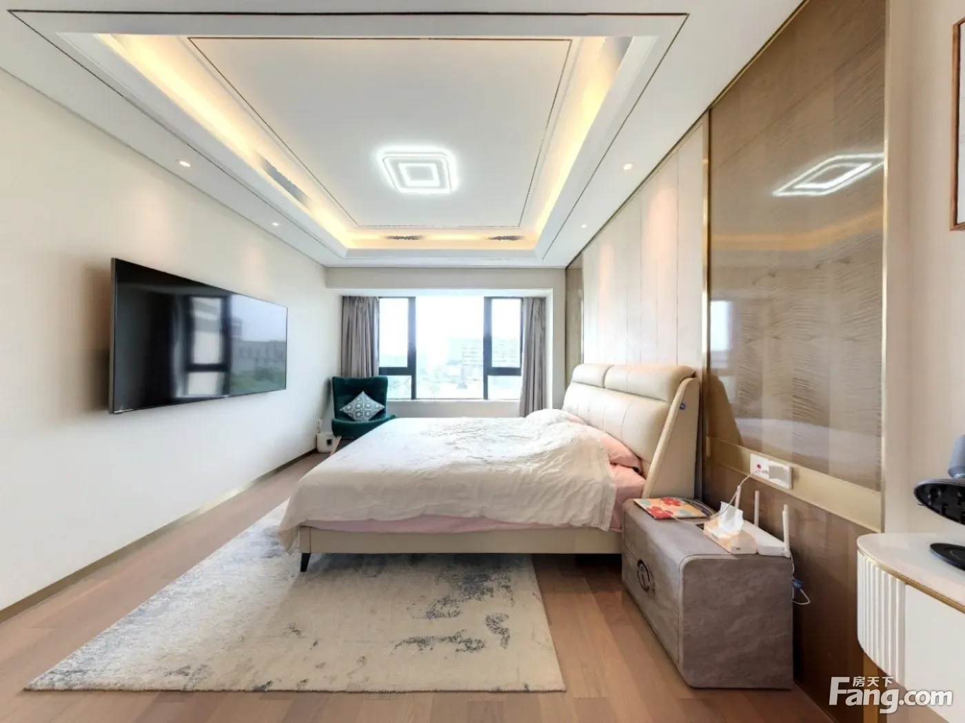 房子是2021年交房,四房双卫,四个房间分布于小区的四角,目前格局改变为主卧带一个大衣帽间,家里的家具家电全是大品牌。客厅外是公园,视野开阔。