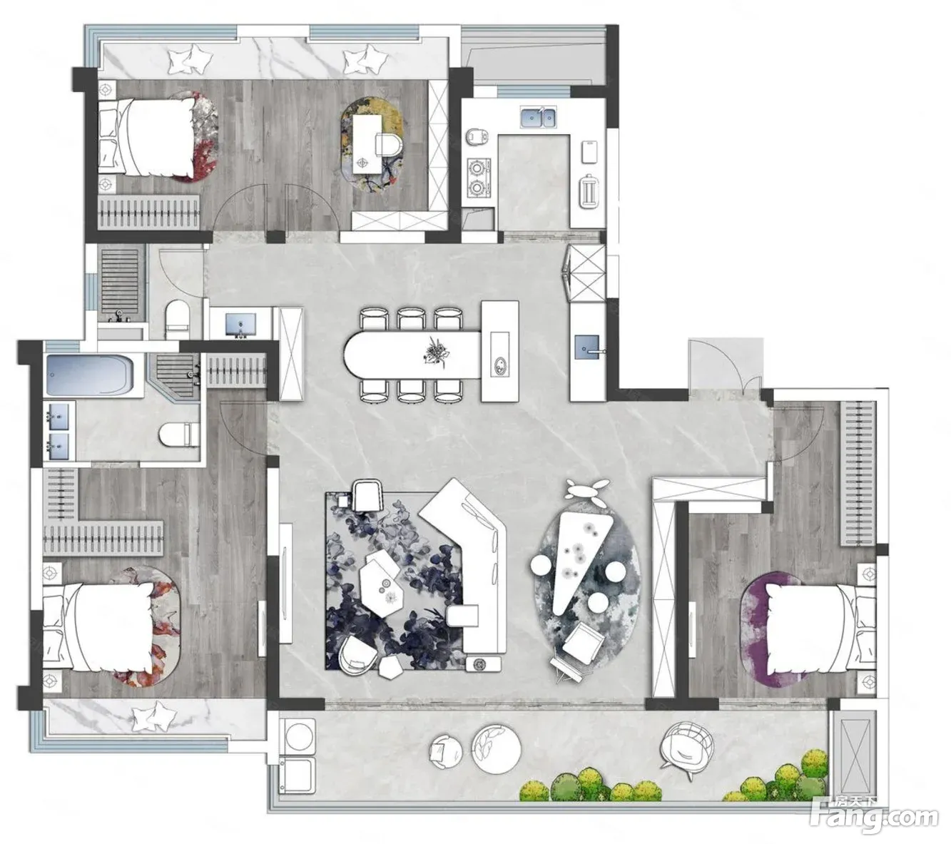 户型齐全,主打全明格局,采光充足,主卧带卫,明厨明卫,大面宽阳台四居