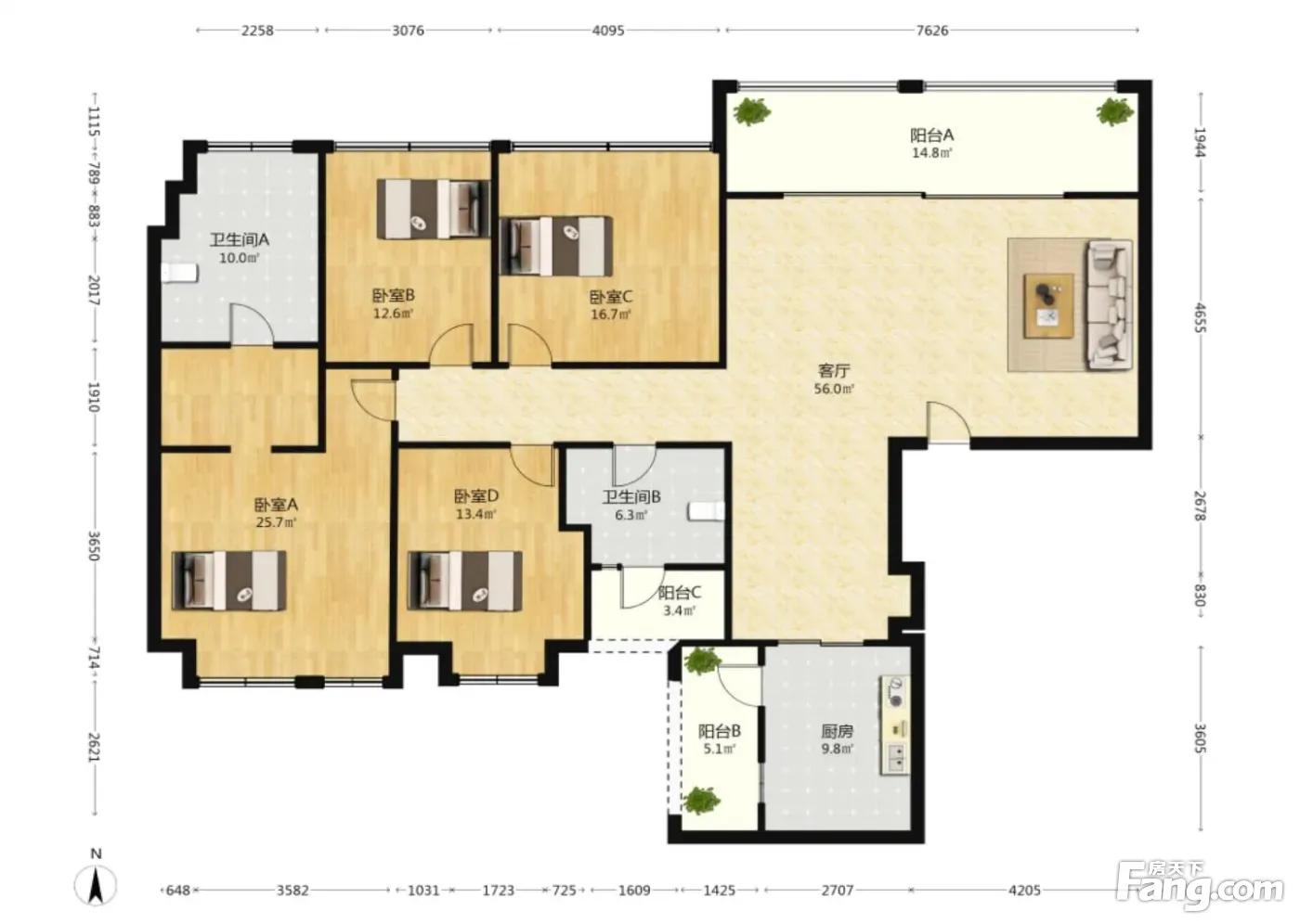 绿地锦天府4室2厅南北