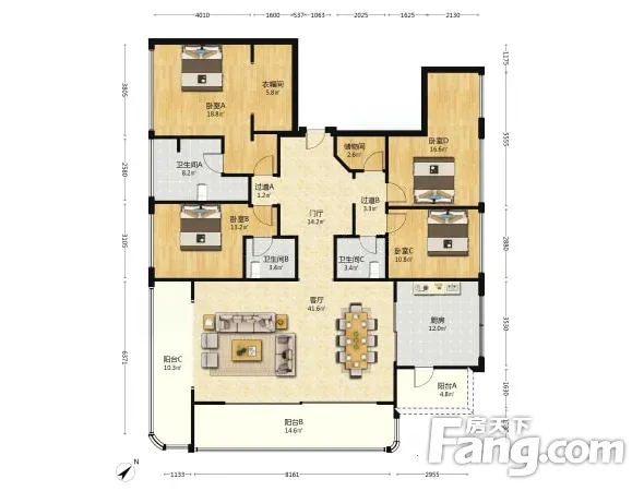 德商锦江天玺 4室1厅 南