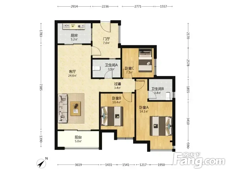 户型齐全,主打明卫,明厨三居