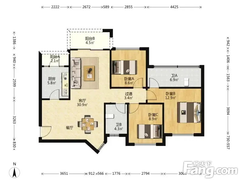 朗基御今缘 3室2厅 南 北