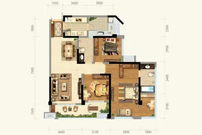 户型齐全,主打主卧带卫,卧室带阳台三居