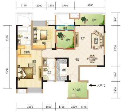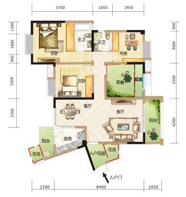 户型齐全,主打主卧朝南三居