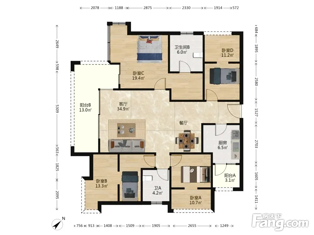 户型齐全,主打户型方正,独立衣帽间,明卫,客厅朝南三居