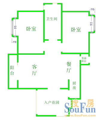 桂苑 2室1厅 南