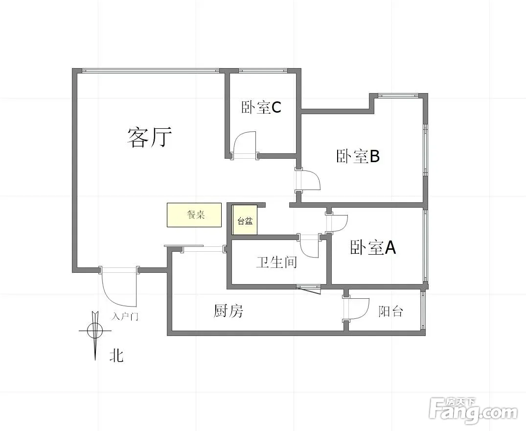 户型齐全,主打明卫,明厨,客厅朝南,全明格局三居