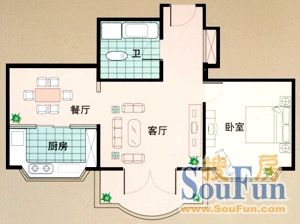 海德花苑 1室2厅 南