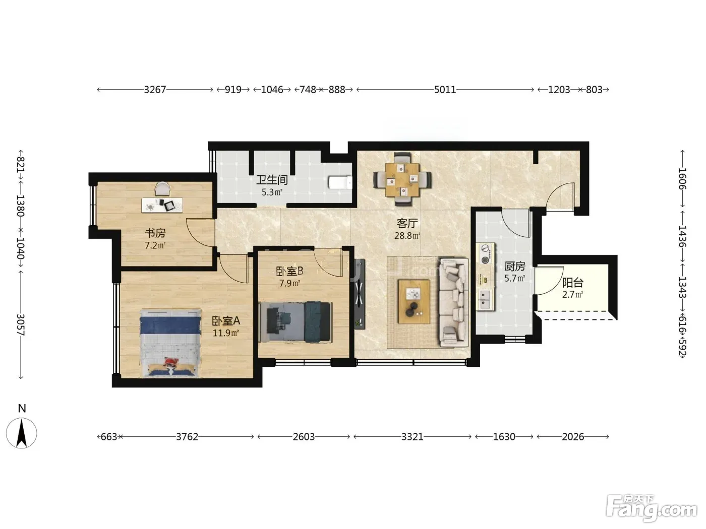 户型齐全,主打明厨,明卫,客厅朝南,全明格局三居
