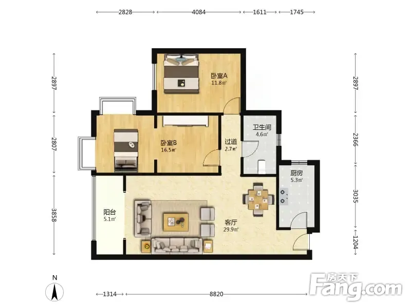 户型齐全,主打明卫,客厅朝南,主卧朝南二居