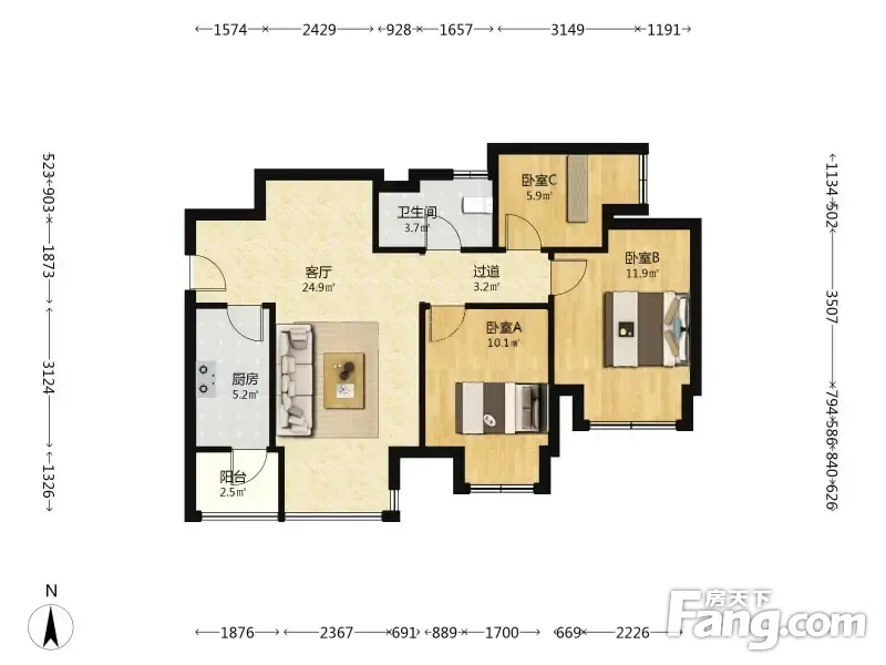 招商中央华城2期 3室1厅 西南