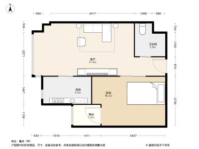 蓝光花好月圆1室1厅南
