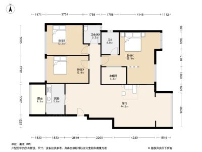 户型齐全,主打明卫,独立衣帽间,客厅朝南三居