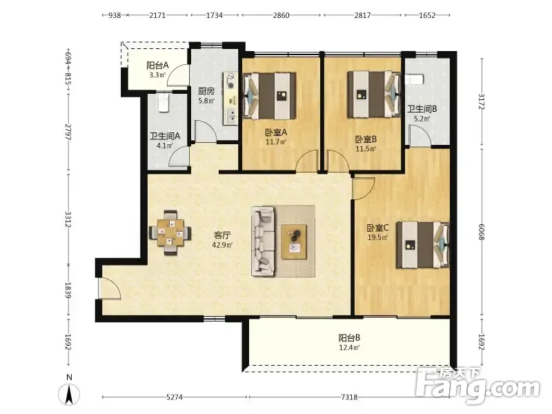 户型齐全,主打全明格局,动静分离三居