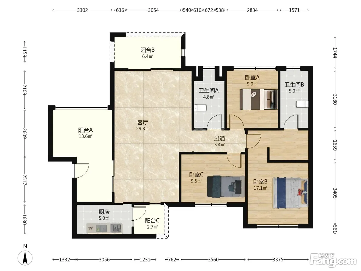 百悦天鹅湖 3室1厅 南 北