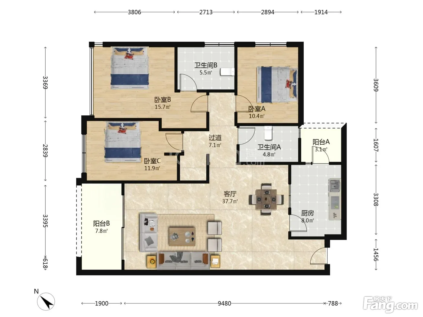 户型齐全,主打明卫,双阳台三居