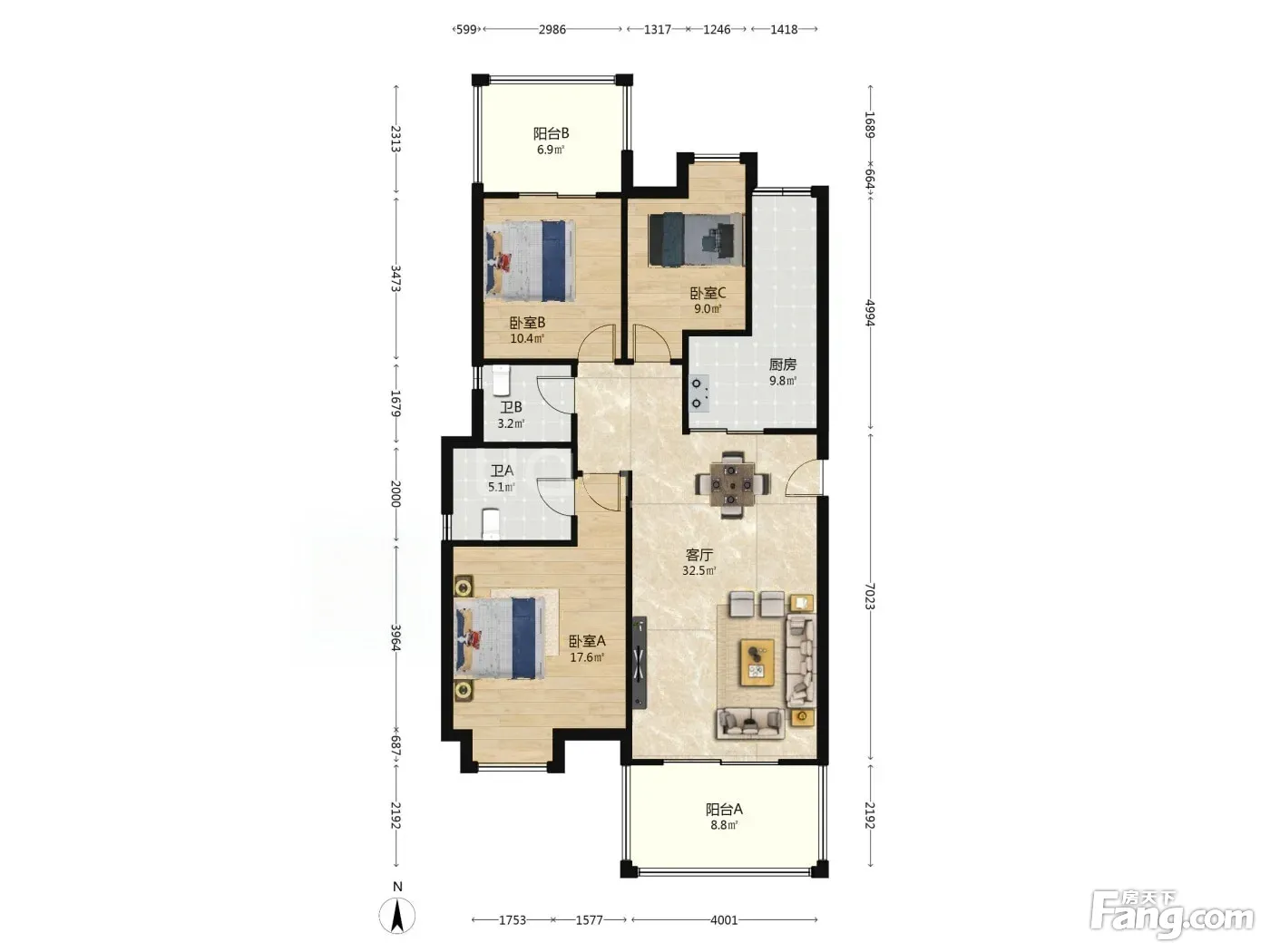 凯德风尚 3室1厅 南