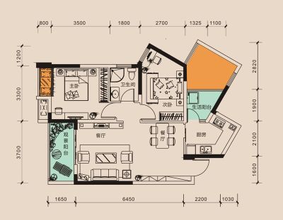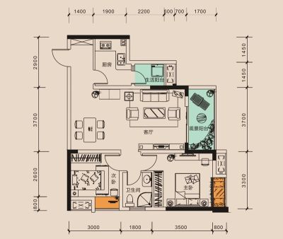 隆腾世纪朗域2室1厅东