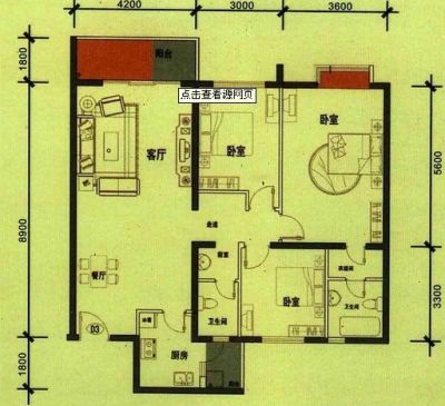龙锦文苑3室1厅西南