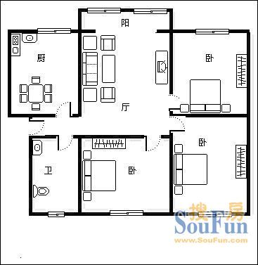 户型齐全,主打明卫,客厅朝南二居