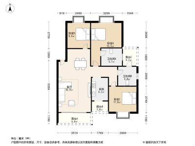户型齐全,主打户型方正,明卫三居