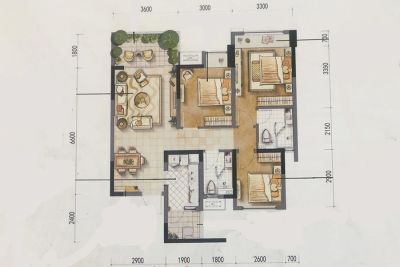 户型齐全,主打户型方正,动静分离三居