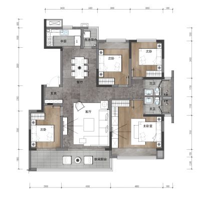 中车共享城户型主要有145平-175平的户型方正,主卧带卫,双阳台的四居 、167平-167平的户型方正,主卧带卫的三居 。