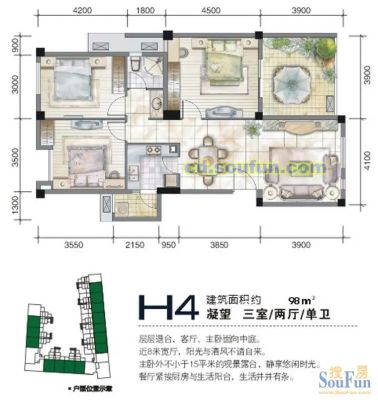3室1厅2卫