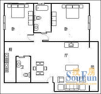 户型齐全,主打明厨,客厅朝南二居