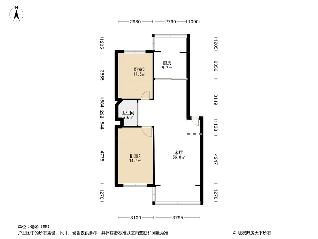 户型齐全,主打户型方正,明厨,主卧朝南二居