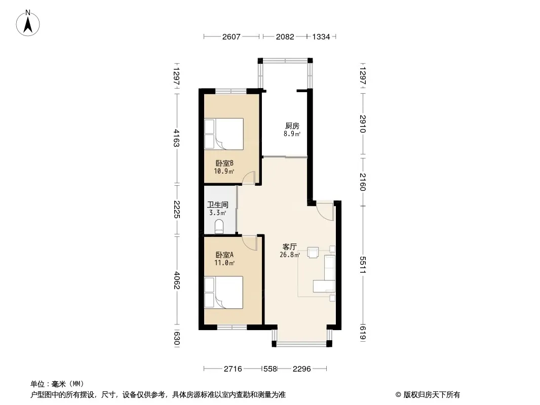 户型齐全,主打客厅朝南二居